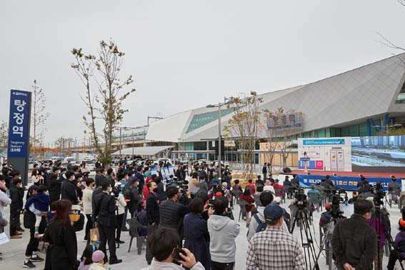 ¿À¼¼Çö ½ÃÀåÀº À̳¯ °³Åë½Ä¿¡¼ ¡°ÅÁÁ¤¿ª °³ÅëÀº ¾Æ»ê½ÃÀÇ Å« °æ»çÀε¥ Äڷγª19·Î ´õ ¸¹Àº ½Ã¹Î°ú ÇÔ²²ÇÏÁö ¸øÇØ ¾Æ½±´Ù¡±¸é¼ ÅÁÁ¤¿ªÀÌ °³ÅëµÇ±â±îÁö ¹°½É¾ç¸é ÇùÁ¶ÇØ ÁØ Çѱ¹Ã¶µµ°ø»ç, ±¹°¡Ã¶µµ°ø´Ü, Çѱ¹ÅäÁöÁÖÅðø»ç, Áֹε鲲 °¨»ç Àλ縦 ÀüÇÏ°í °¨»çÆÐ¸¦ Àü´ÞÇß´Ù.