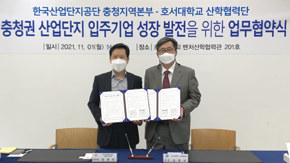 È£¼´ëÇб³(ÃÑÀå ±è´ëÇö) »êÇÐÇù·Â´Ü°ú Çѱ¹»ê¾÷´ÜÁö°ø´Ü ÃæÃ»Áö¿ªº»ºÎ°¡ ¡®ÃæÃ»±Ç »ê¾÷´ÜÁö ÀÔÁÖ Áß¼Ò±â¾÷ÀÇ Áö¼ÓÀûÀÎ ¼ºÀå°ú ¹ßÀü¡¯À» À§ÇÑ ¾÷¹«Çù¾àÀ» 11¿ù 1ÀÏ Ã¼°áÇß´Ù.