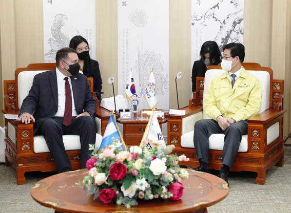| | ¡è¡è <»çÁøÁ¦°ø=Ãæ³²µµ> | ¨Ï ¿Â¾ç½Å¹® | | ¾ç½ÂÁ¶ Ãæ³²µµÁö»ç´Â 11¿ù 5ÀÏ µµÃ» ¿ÜºÎÀλçÁ¢°ß½Ç¿¡¼ ºñ¸£Èú¸®¿À ÆÄ·¹µ¥½º Æ®¶óÆä·Î(Virgilio Paredes Trapero) ÁÖÇÑ ¿ÂµÎ¶ó½º ´ë»ç¸¦ ¸¸³ª µµ¿Í ¿ÂµÎ¶ó½º °£ ±³·ù¡¤Çù·Â ¹æ¾ÈÀ» ³íÀÇÇß´Ù.