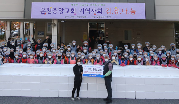 ¾Æ»ê½Ã ¿ëȵ¿¿¡ À§Ä¡ÇÑ ¿ÂõÁß¾Ó±³È¸(´ãÀÓ¸ñ»ç ÃÖ¹®±â)´Â Áö³ 6ÀÏ Áö¿ª»çȸ ¼Ò¿Ü°èÃþÀ» ´ë»óÀ¸·Î ¼¶±è°ú ³ª´®À» ½ÇõÇϱâ À§ÇÑ ¡®±èÀ峪´® ÃàÁ¦¡¯¸¦ ¿°í, ÀÌ Çà»ç¸¦ ÅëÇØ »ý»êµÈ ±èÀå±èÄ¡ 10Kg 300¹Ú½º(1,200Æ÷±â)¸¦ ¾Æ»ê½Ã°¡ ÁöÁ¤ÇÏ´Â Áö¿ª»çȸ¿¡ ±âºÎÇß´Ù.