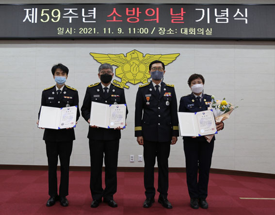 À̳¯ Çà»ç´Â Äڷγª19·Î ÀÎÇØ ¿ÜºÎÀλç ÃÊû ¾øÀÌ ¼Ò±Ô¸ð ÀÚü Çà»ç·Î ÁøÇàµÅ, ÈÀç Áø¾Ð ¹× ÀÎ¸í ±¸Á¶ µî °¢Á¾ Àç³ ÇöÀå¿¡¼ Ȱ¾àÇÑ ¼Ò¹æ°ø¹«¿ø°ú ÀÇ¿ë¼Ò¹æ´ë¿ø ¹× ¼Ò¹æÇàÁ¤ ¹ßÀü¿¡ ±â¿©ÇÑ À¯°øÀÚµéÀ» ǥâÇϰí, ±×µéÀÇ ³ë°í¿¡ °¨»ç¸¦ ÀüÇÏ´Â ½Ã°£À» °¡Á³´Ù.