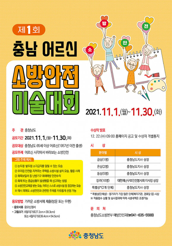 ¾Æ»ê¼Ò¹æ¼(¼Àå ±èÀå¼®)°¡ 11¿ù 1ÀϺÎÅÍ 30ÀϱîÁö ÁøÇàµÇ´Â¡®Á¦1ȸ Ãæ³² ¾î¸£½Å ¼Ò¹æ¾ÈÀü ¹Ì¼ú´ëȸ¡¯¸¦ È«º¸Çϰí ÀÖ´Ù.