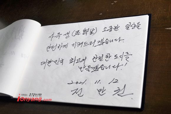 Áö³ 11¿ù 11ÀÏ 34³â°£ÀÇ °øÁ÷»ýȰÀ» ¸¶Ä¡°í ÅðÀÓÇÑ Àü Àü ºÎ½ÃÀåÀº À̳¯ ÁöÀÎ µî °¢°Ô°¢ÃþÀÇ Àλçµé°ú ÇÔ²² ÇöÃæ»ç¸¦ ¹æ¹®Çϰí, ¹æ¸í·Ï¿¡ ¡®»çÁï»ý(ÞÝñíßæ) ¼ÒÁßÇÑ ÀÏ»óÀ» ¾ÈÀüÇÏ°Ô ÁöÄѵ帮°Ú½À´Ï´Ù. ´ëÇѹα¹ ÃÖ°íÀÇ ¾ÈÀüÇÑ µµ½Ã¸¦ ¸¸µé°Ú½À´Ï´Ù¡¯¶ó°í Àû¾ú´Ù.
