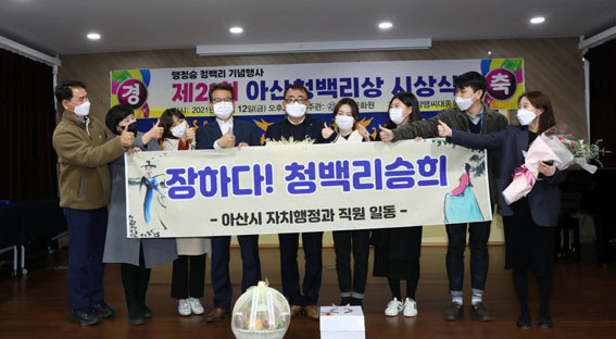 ¾Æ»êû¹é¸®»ó ¼ö»óÀÚ¿¡´Â ¡ã¼±ºñ»ó À̽ÂÈñ(¾Æ»ê½Ã ÀÚÄ¡ÇàÁ¤°ú ÇàÁ¤ÆÀÀå), ¡ã½º½Â»ó ÀÌÀçÀ±(¿Â¾çÇÑ¿ÃÁßÇб³ ±³»ç), ¡ãÁöÅ´ÀÌ»ó ½ÅÀåÈ£(¾Æ»ê¼Ò¹æ¼ ÀÎÁÖ119¾ÈÀü¼¾ÅÍÀå), ÁøÁ¾¿ø(¾Æ»ê½ÃÀÚÀ²¹æ¹ü¿¬ÇÕ´ë »ç¹«±¹Àå) ¾¾°¡ ¼ö»óÀÇ ¿µ±¤À» ¾È¾Ò´Ù.