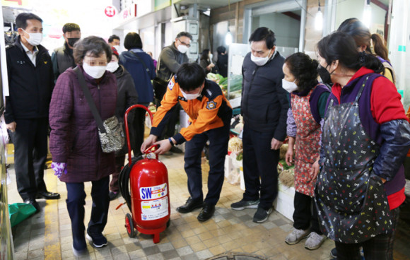 À̳¯ ¾Æ»ê¼Ò¹æ¼¿¡¼´Â °£´ãȸ¿¡¼ ÈÀ翹¹æÀ» À§ÇØ Á¡Æ÷º° »ç¿ëÇÏ´Â Äܼ¾Æ®¿¡ ºÙ¿© »ç¿ëÇÒ ¼ö Àִ¡®ÀÚµ¿¼ÒÈÆÐÄ¡¡¯¹×¡®ÀÚµ¿¼ÒÈ¸ÖÆ¼ÅÇ¡¯¿¡ ´ëÇØ ¾È³»ÇÏ¿´À¸¸ç, ÀüÅë½ÃÀå ³» °¡Àå ºÕºñ´Â ¸ÔÀÚ°ñ¸ñ¿¡ ´ëÇü¼Òȱâ 3°³¸¦ ºñÄ¡Çϰí, ½ÃÀå»óÀÎ µîÀ» ´ë»óÀ¸·Î ¼Òȱ⠻ç¿ë¹ý¿¡ ´ëÇØ ±³À°À» ½Ç½ÃÇß´Ù.