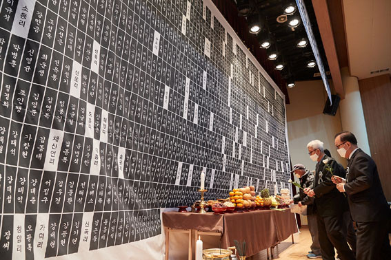 ¿À¼¼Çö ½ÃÀåÀº Ã߸ð»ç¿¡¼ ¡°Çѱ¹ÀüÀï ½Ã±â, ¾Æ»êÁö¿ª¿¡¼ ¹ß»ýÇÑ ¹Î°£ÀÎ Çлì·Î Èñ»ý´çÇÑ ¿µ·ÉµéÀÇ ¸íº¹À» ºô¸ç ´«¹°·Î Ã߸ðÁ¦¸¦ ÁغñÇϼÌÀ» À¯Á·ºÐµé²²µµ ±íÀº À§·ÎÀÇ ¸»¾¸ µå¸°´Ù¡±¸ç ¡°½Ã´Â ¹Î°£ÀÎ Èñ»ý »ç°ÇÀÇ Áø½Ç±Ô¸íÀ» À§ÇØ ³»³â¿¡µµ À¯ÇØ ¹ß±¼À» °èȹÇϰí ÀÖ°í, À¯°¡Á· »Ó¸¸ ¾Æ´Ï¶ó ¾Æ»ê½Ã¹Î ¸ðµÎ°¡ ¹Î°£ÀÎ Èñ»ý »ç°ÇÀ» ±â¾ïÇϰí Èñ»ýÀÚ¸¦ Ã߸ðÇÒ ¼ö ÀÖµµ·Ï °ü·Ã »ç¾÷¿¡ Áö¿øÀ» ¾Æ³¢Áö ¾Ê°Ú´Ù¡±°í ¸»Çß´Ù.