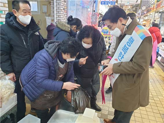 ¾Æ»ê°© À̸í¼ö ±¹È¸ÀÇ¿øÀ» ºñ·ÔÇÑ °©À» ÁÖ¿ä ´çÁ÷ÀÚµéÀÌ ÇÔ²² ÇÑ À̳¯, ¹Ú À§¿øÀåÀº ¼³ Á¦¼ö¿ëǰ µîÀ» »ç¸ç »óÀεé°ú ¼³ ´ö´ãÀ» ³ª´©°í Äڷγª19·Î ¾î·Á¿öÁø ½ÃÀå »çÁ¤À» ûÃëÇß´Ù.