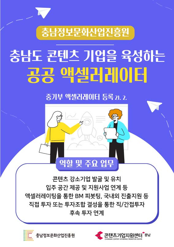 ¾×¼¿·¯·¹ÀÌÅÍ´Â Ãʱâ â¾÷ÀÚ¸¦ ¼±¹ß, Àü¹® º¸À°°ú ÅõÀÚ¸¦ ÁÖµÈ ¾÷¹«·Î Çϸç, Ãæ³²µµ ³» ÄÜÅÙÃ÷ ±â¾÷À» º¸´Ù ¹ÐÂøÇÏ¿© ¹ß±¼Çϰí Áö¿øÇÏ°Ô µÈ´Ù.