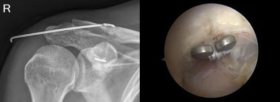 Á¤Çü¿Ü°ú ¼ö¼ú °ü·Ã SCI ±Þ ±¹Á¦ÇмúÁöÀÎ ±¹Á¦ÇмúÁöÀÎ ¡®Knee Surgery, Sports Traumatology, Arthroscopy¿¡ °ÔÀçµÈ Coracoid clavicular tunnel angle is related with loss of reduction in a single?tunnel coracoclavicular fxation using a dog bone button in acute acromioclavicular joint dislocation¡¯ ³í¹°Àº ¾î±úÀÇ °ß¼â °üÀý ¼Õ»ó¿¡¼ ³»½Ã°æ ¼ö¼ú ±â¹ýÀ» º¸°íÇÑ ¿¬±¸·Î ±âÁ¸ÀÇ ¼ö¼ú¹ýÀÇ ÀüÀ§ ¹ß»ýÀÇ ÇѰ踦 ±Øº¹ÇÏ¿© ¼ö¼ú ÈÄ ¿ì¼öÇÑ È¸º¹À» º¸°íÇÑ ³í¹®ÀÌ´Ù.