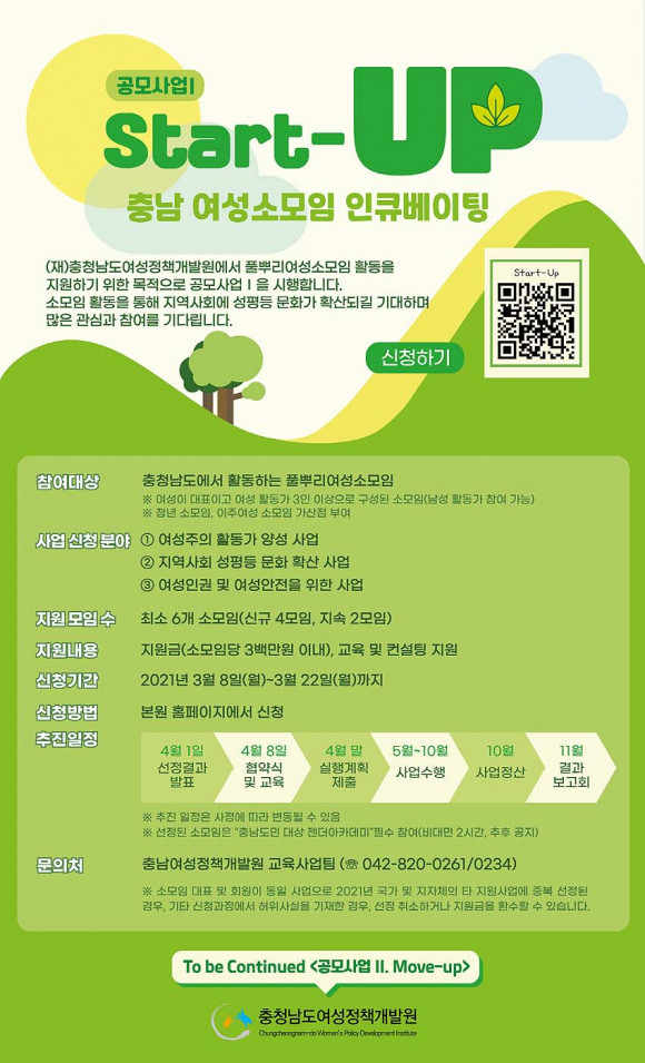 ¡®ÀÎÅ¥º£ÀÌÆÃ Start-Up¡¯Àº ƯÈ÷ Á¤ºÎ °ø¸ð»ç¾÷ÀÇ Áö¿ø ´ë»ó¿¡¼ ¹èÁ¦µÇ¾î ¿Â ¼Ò¸ðÀÓÀ» Áö¿øÇÑ´Ù´Â Á¡¿¡¼ Àǹ̰¡ ÀÖ´Ù. ¿©¼ºÀÌ ´ëÇ¥ÀÌ°í ¿©¼ºÈ¸¿ø 3ÀÎ ÀÌ»óÀ¸·Î ±¸¼ºµÈ ¼Ò¸ðÀÓ(³²¼º ȸ¿ø Âü¿©µµ °¡´É)ÀÌ¸é ´©±¸³ª µµÀüÇÒ ¼ö ÀÖ´Ù.