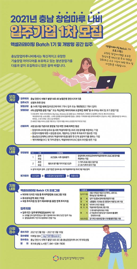Ãæ³²Ã¢Á¶°æÁ¦Çõ½Å¼¾ÅÍ´Â ¿À´Â 3¿ù 19ÀϱîÁö Ãæ³² â¾÷¸¶·ç ³ªºñ ÀÔÁÖ±â¾÷À» ¸ðÁýÇÑ´Ù.