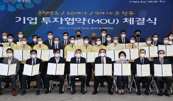 ¾ç½ÂÁ¶ Áö»ç´Â 3¿ù 17ÀÏ µµÃ» ´ëȸÀǽǿ¡¼ ¹Ú»óµ· õ¾È½ÃÀå µî 9°³ ½Ã±º ´ÜüÀå, ±è±¤¼ö Á¦¶§ ´ëÇ¥À̻縦 ºñ·ÔÇÑ 30°³ ±â¾÷ ´ëÇ¥¿Í ÅõÀÚÇù¾à(MOU)À» ü°áÇß´Ù.