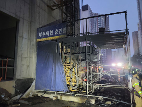 (ÁÖ)¿ì¹æÀÇ ½ÅÃà ¾ÆÆÄÆ® °ø»çÇöÀå »ê¾÷¾ÈÀü°ü¸®ÀÚ ÀÌ ¸ð(³²¡¤31¼¼) ¾¾¿¡ ÀÇÇϸé Àú³á½Ä»ç Áß ¡®Æã¡¯ ¼Ò¸®°¡ µé¸®°í ÈÀç°¡ ¹ß»ýÇß´Ù´Â ¹«ÀüÀ» µè°í ÇöÀå È®ÀÎ °á°ú È£À̽ºÆ®(°Ç¼³¿ë ¿¤¸®º£ÀÌÅÍ)ÂÊ¿¡¼ ºÒ²É°ú ¿¬±â°¡ º¸¿´´Ù°í.