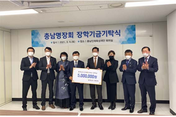 ±â¼úÁö¿ø±ÝÀÇ ÀϺθ¦ ÈÄ¹è ¾ç¼º¿¡ ¾²°í ½Í´Ù´Â Ãæ³²¸íÀåȸÀÇ ¶æ¿¡ µû¶ó Áö³ 3¿ù 6ÀÏ Àç´Ü ȸÀǽǿ¡¼ ±âʽÄÀÌ ÁøÇàµÆÀ¸¸ç, ÀÌ ÀåÇбâ±ÝÀº Èʳ¯ ÃæÃ»³²µµ »ê¾÷ °æÀï·Â °È¸¦ ¼±µµÇسª°¥ ±â¼ú¡¤±â´É ºÐ¾ß ÀÎÀ縦 Áö¿øÇÏ´Â ÀåÇбÝÀ¸·Î ¾²ÀÏ ¿¹Á¤ÀÌ´Ù.