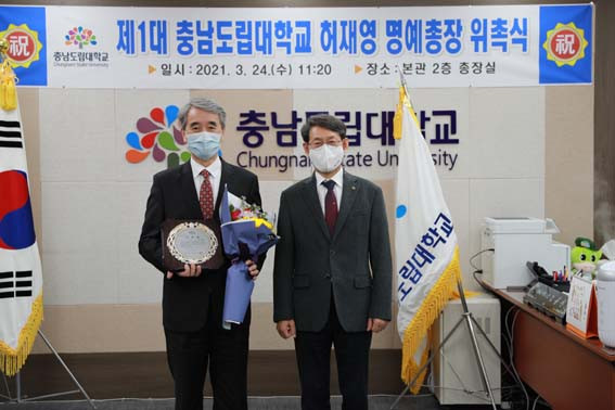 Ãæ³²µµ¸³´ëÇб³(ÃÑÀå ±è¿ëÂù)´Â 3¿ù 24ÀÏ ´ëÇÐ ÃÑÀå½Ç¿¡¼ ±è¿ëÂù ÃÑÀå°ú ´ëÇÐ º»ºÎ ó?´ÜÀåµéÀÌ Âü¼®ÇÑ °¡¿îµ¥ Á¦1´ë ¸í¿¹ÃÑÀå À§ÃËÀå ¼ö¿©½ÄÀ» °¡Á³´Ù°í ¹àÇû´Ù.