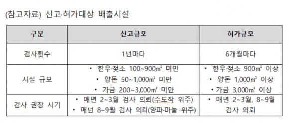 °¡ÃàºÐ´¢·Î ÀÎÇÑ È¯°æ¿À¿° ¹æÁö ¹× ¾ÇÃë Àú°¨À» À§ÇØ ÃßÁøÇÏ´Â ÀÌ Á¦µµ´Â °¡ÃàºÐ´¢ ¹èÃâ½Ã¼³ÀÇ °æ¿ì Çã°¡´ë»ó Ãà»ê ³ó°¡´Â 6°³¿ù¿¡ 1ȸ, ½Å°í´ë»ó Ãà»ê ³ó°¡´Â ¿¬ 1ȸ Åðºñ ºÎ¼÷µµ °Ë»ç¸¦ Àǹ« ½Ç½ÃÇØ¾ß ÇÑ´Ù.