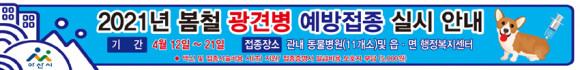 ÀÌ¿¡ ¾Æ»ê½Ã(½ÃÀå ¿À¼¼Çö)°¡ °ü³» ¼öÀÇ»ç¿Í ÇÔ²² 4¿ù 12ÀϺÎÅÍ 21ÀϱîÁö ¹Ý·Á°ß ´ë»ó ±¤°ßº´ ¿¹¹æÁ¢Á¾À» ½Ç½ÃÇÑ´Ù.
