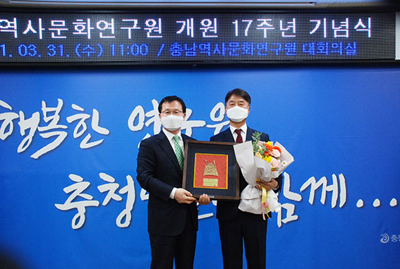 À̳¯ ±â³ä½Ä¿¡¼ ¹Úº´Èñ ¿øÀåÀº ¡°Ãæ³²Àº ¹éÁ¦¹®È¿Í ³»Æ÷¹®È, ±âÈ£À¯ÇÐ µîÀÌ ²ÉÇÇ¿î °÷¡±À̶ó¸ç ¡°Ãæ³²¿ª»ç¹®È¿¬±¸¿øÀº ÀÌ·± Ãæ³²ÀÇ ¿ª»ç¿Í ¹®È¸¦ Á¾ÇÕÀûÀ̰í ü°èÀûÀ¸·Î ¼öÁý¡¤Á¶»ç¡¤¹ß±¼¡¤¿¬±¸Çϸç, Ãæ³² ¿ª»ç¡¤¹®ÈÀÇ »õ·Î¿î ¹Ì·¡¸¦ Á¦½ÃÇØ ¿Ô´Ù¡±°í ¸»Çß´Ù.