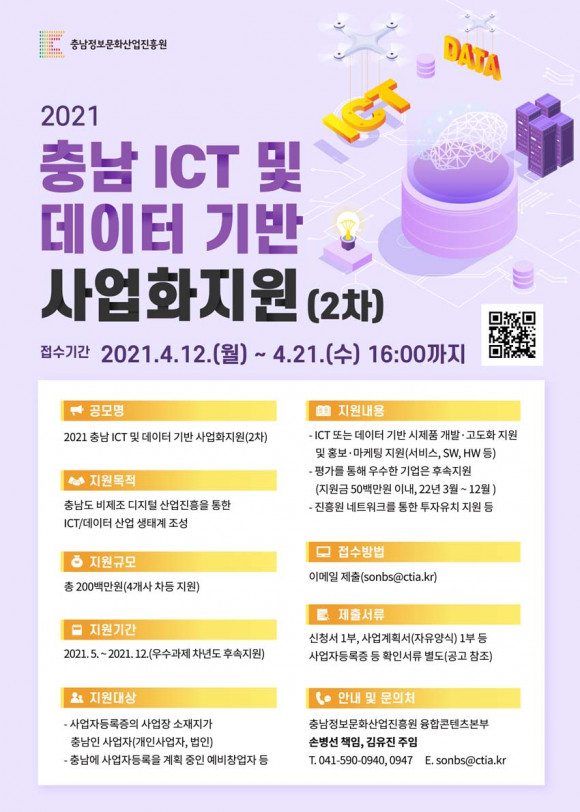 Ãæ³²Á¤º¸¹®È»ê¾÷ÁøÈï¿ø(¿øÀå ¸Íâȣ, ÀÌÇÏ CTIA)Àº ICT ¹× µ¥ÀÌÅͱâ¹ÝÀÇ »ç¾÷ÀÚ¿Í ¿¹ºñâ¾÷ÀÚ¸¦ ´ë»óÀ¸·Î 21ÀϱîÁö ȨÆäÀÌÁö(ctia.kr)¸¦ ÅëÇØ »ç¾÷ºñÁö¿ø °ø¸ð¿¡ µé¾î°£´Ù°í 1ÀÏ ¹àÇû´Ù.