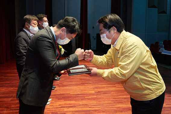 °¿ìÁø »çȸº¹Áö»ç´Â ¡°Äڷγª19·Î ¾î·Á¿î »óȲ¿¡µµ ÅõöÇÑ ºÀ»çÁ¤½ÅÀ¸·Î ²ÙÁØÇÏ°Ô ºÀ»ç¸¦ ÇÔ²² ÁøÇàÇØ Áֽɿ¡ °¨»çµå¸®¸ç Áø½ÉÀ¸·Î ¼ö»óÀ» ÃàÇϵ帰´Ù.¡±°í ÀüÇß´Ù.