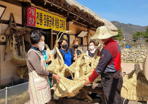 ¡®Â¤Ç®°ø¿¹ ÀüÅë±â¼ú Àü¼ö»ç¾÷¡¯Àº ÇöÀç ¿Ü¾Ï¹Î¼Ó¸¶À» ÀúÀã°Å¸®¿¡¼ ÁøÇàµÇ°í ÀÖÀ¸¸ç Àü¹®ÀηÂÀÇ Áöµµ ¾Æ·¡ 5¸íÀÇ Âü¿©ÀÚµéÀÌ ±¸½½¶¡À» È긮¸ç °ø¿¹Ç°À» ¸¸µé°í ÀÖ´Ù.