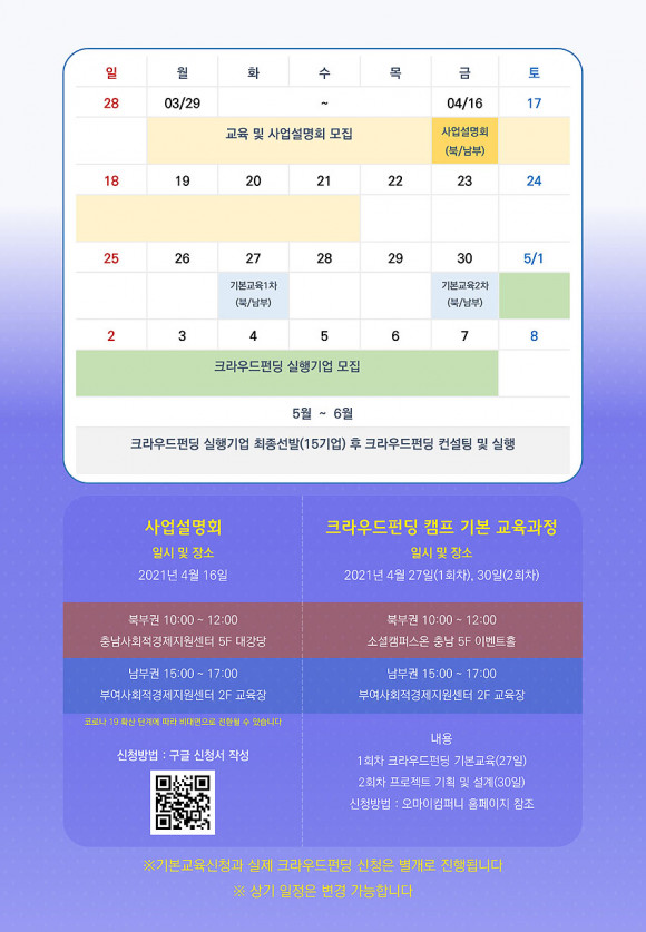 Å©¶ó¿ìµåÆÝµù Ä·ÇÁ ¼³¸íȸ´Â 4¿ù 15ÀϱîÁö ½Åû °¡´ÉÇϸç, ±âº» ±³À° °úÁ¤Àº ¿À´Â 4¿ù 21ÀϱîÁö, Å©¶ó¿ìµåÆÝµù ½ÇÇàÀº 5¿ù ÀÌÈÄ ¼¾ÅÍ È¨ÆäÀÌÁö¸¦ ÅëÇØ °¢°¢ ½ÅûÇÏ¸é µÈ´Ù.