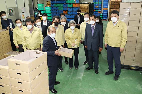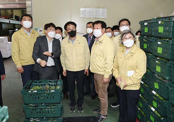 À§¿øµéÀº À̳¯ ÇöÀå¿¡¼ ²¢ÀÙ »ý»êºÎÅÍ ¼±º°°ú Æ÷Àå °úÁ¤, ¿ì¼ö³ó»ê¹°°ü¸®Á¦µµ ÀÎÁõ µî °ü¸®»óȲÀ» È®ÀÎÇÏ°í ±Ù¹«ÀÚµéÀ» °Ý·ÁÇß´Ù.
