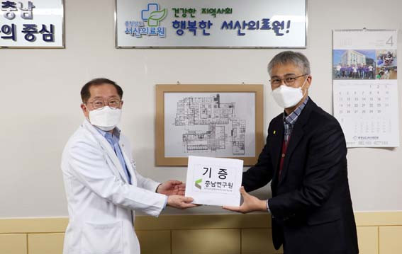 Ãæ³²¿¬±¸¿ø À±È² ¿øÀåÀº ¡°¿¬±¸¿ø °¡Á·µéÀÌ ¸ðÀº ¼º±ÝÀ¸·Î ¸¶·ÃÇÑ ¹°Ç°À» Àü´ÞÇÏ°Ô µÅ ´õ¿í ¶æ±í°Ô »ý°¢ÇÑ´Ù¡±¸ç ¡°¿ì¸® Áö¿ªÀÇ Äڷγª19 ȯÀÚ ¸ðµÎ°¡ ÇϷ绡¸® ¿ÏÄ¡µÅ ´õ °Ç°Çϰí ÇູÇÑ »îÀ» ´©¸± ¼ö ÀÖ±æ ±â¿øÇÑ´Ù¡±°í ¸»Çß´Ù.