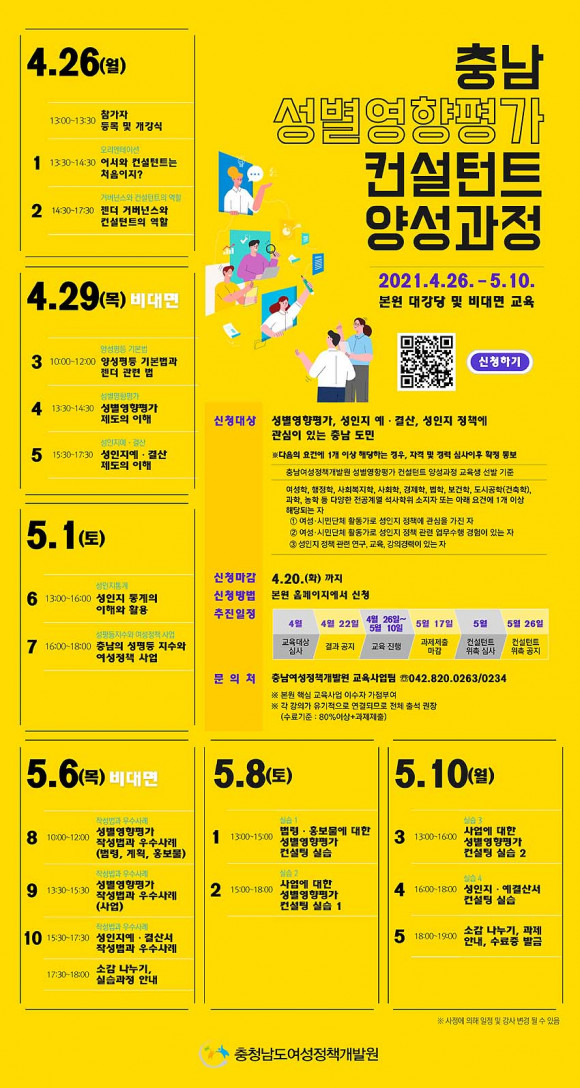 Áö¿ø ´ë»óÀº ¼ºº°¿µÇâÆò°¡, ¼ºÀÎÁö ¿¹¡¤°á»ê, ¼ºÀÎÁö Á¤Ã¥¿¡ °ü½ÉÀÌ ÀÖ´Â Ãæ³²µµ¹ÎÀ¸·Î, 4¿ù 20ÀϱîÁö ¿©¼ºÁ¤Ã¥°³¹ß¿ø ȨÆäÀÌÁö(http://www.cwpdi.re.kr)¸¦ ÅëÇØ ½Åû °¡´ÉÇÏ´Ù. ±³À°½ÅûÀÚ¿¡ ´ëÇÑ ½É»ç°á°ú´Â 4¿ù 22ÀÏ ¹ßÇ¥ÇÒ ¿¹Á¤ÀÌ´Ù.
