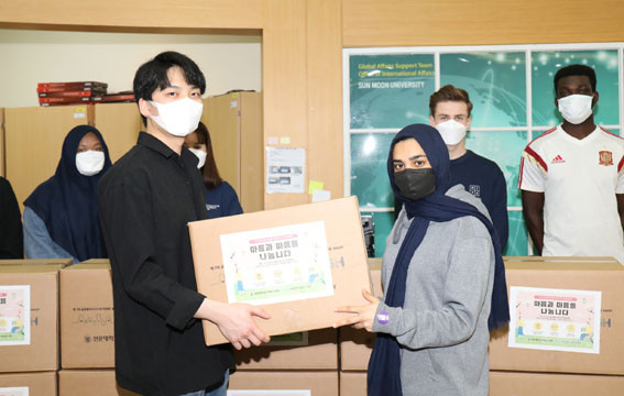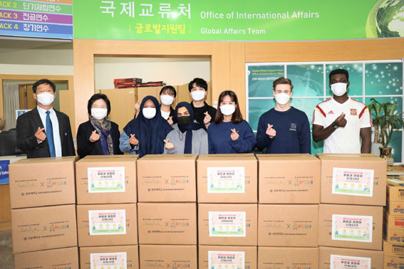 ±Û·Î¹úºñÁî´Ï½º´ëÇÐ Çлýȸ(ȸÀå ±èÀçÁß¡¤IT°æ¿µÇаú 3Çгâ)¿Í Àι®»çȸ´ëÇÐ Çлýȸ(ȸÀå ±èÈ¿Áø¡¤¹Ìµð¾îÄ¿¹Â´ÏÄÉÀ̼ÇÇаú 4Çгâ)¿¡¼´Â Äڷγª19 Àå±âÈ·Î °æÁ¦Àû ¾î·Á¿òÀ» °Þ°í ÀÖ´Â À¯ÇлýµéÀ» À§ÇØ Èñ¸ÁŰƮ 192°³¸¦ Á¦ÀÛÇß´Ù. Èñ¸ÁŰƮ¿¡´Â °£Æí ½Äǰ, ¹ÝÂù µîÀÇ ½Ä·áǰ°ú ¸¶½ºÅ©, ÀÀ¿ø ÆíÁö µîÀ» »óÀÚ¿¡ ´ã¾Ò´Ù.