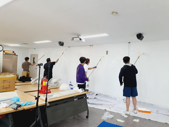 ȸ¿øµéÀÇ ÀÚ¹ßÀû Âü¿©·Î ÀÌ·ïÁø À̹ø ºÀ»ç´Â Äڷγª 19 ¹æ¿ªÁöħÀ» öÀúÇÏ°Ô ÁؼöÇÏ¸ç ³ëÈÄµÈ º¹Áö°ü º®°ú °É·¹¹ÞÀÌ µî¿¡ »õ·Ó°Ô ÆäÀÎÆ®Ä¥À» ÇÏ´Â µî ½Ã¼³ ÀÌ¿ëÀÚÀÇ È°µ¿À» À§ÇØ ±¸½½¶¡À» Èê·È´Ù.