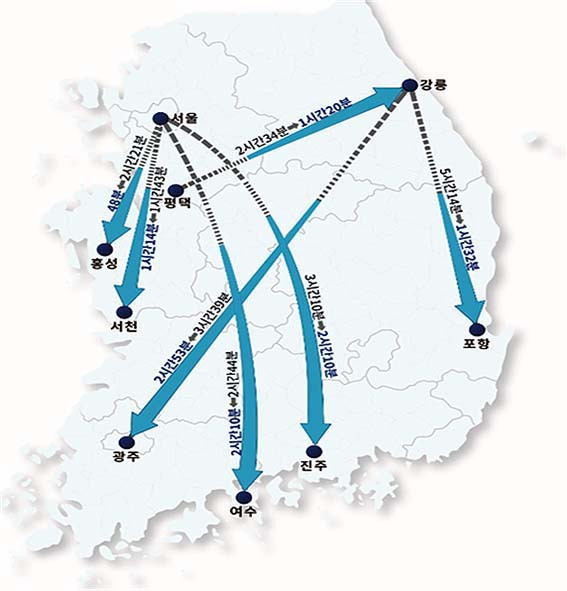 Çѱ¹±³Å뿬±¸¿øÀº ¼Çؼ±ÀÌ °æºÎ°í¼Ó¼±°ú ¿¬°áµÇ¸é, È«¼º¿¡¼ ¼¿ï±îÁö À̵¿½Ã°£ÀÌ ÇöÀçÀÇ 2½Ã°£21ºÐ¿¡¼ 48ºÐÀ¸·Î ´ÜÃàµÉ °ÍÀ¸·Î ¿¹»óÇÑ´Ù.