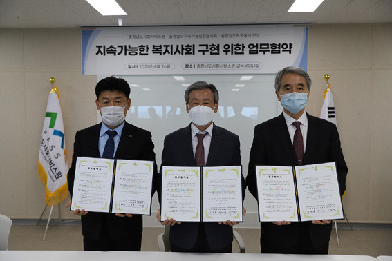 À̳¯ Çù¾à½Ä¿¡´Â ¹Ú¼º¼ø Ãæ³²ÀÚ¿øºÀ»ç¼¾ÅÍ, °íÀÏȯ Ãæ³²»çȸ¼ºñ½º¿øÀå, ÇãÀ翵 Áö¼Ó°¡´É¹ßÀüÇùÀÇȸÀåÀ» ºñ·ÔÇÑ °ü°èÀÚ µîÀÌ Âü¼®ÇÏ¿´À¸¸ç, ±â°ü °£ ±³·ù¡¤Çù·ÂÀ» ÅëÇØ ¡®Áö¼Ó°¡´ÉÇÑ º¹Áö»çȸ¡¯ ±¸ÇöÀ» À§ÇØ ¾Ö¾²±â·Î ¾à¼ÓÇß´Ù.