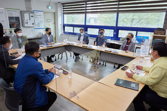 ¾Æ»ê½Ã µµ½ÃÀç»ýÁö¿ø¼¾ÅÍ(¹è¹æÀ¾ ¸ð»ê·Î 180)¿¡¼ ¿¸° À̹ø °£´ãȸ´Â ¹è¹æµµ½ÃÀç»ýÁÖ¹ÎÀ§¿øÈ¸ÀÇ ¹æº´ÁØ »óÀÓÀ§¿øÀå µî 5ÀÎÀÇ °øµ¿À§¿øÀåÀÌ Âü¼®Çß´Ù.