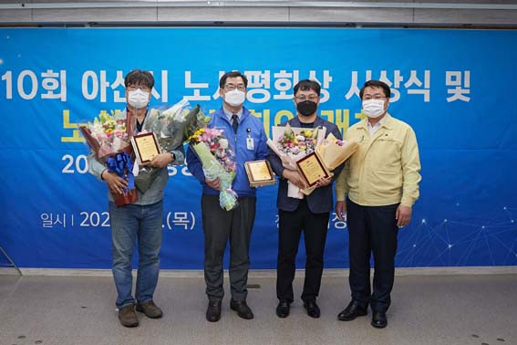 ¶ÇÇÑ ³ë»çÆòÈ»óÀº ³ë»ç»ó»ý°ú Çù·Â¿¡ ¸ð¹üÀ» º¸¿©ÁֽŠ³ëµ¿´Üü, ±â¾÷ü, ±Ù·ÎÀÚ·Î 3°³ ºÎ¹®¿¡ ½Ã»óÇÏ¸ç ¿ÃÇØ·Î 10ȸ° ¸Â´Â ¶æ±íÀº »óÀÌ´Ù. ¼ö»óÀÚ´Â ³ëµ¿´ÜüºÎ¹® ¿¬¼¼¿ìÀ¯³ëµ¿Á¶ÇÕ(À§¿øÀå ±è¼º¾Ï),±â¾÷üºÎ¹®Àº ¢ß¾Æ»ê¼º¿ìÇÏÀÌÅØ(´ëÇ¥ À̹®¿ë), ±Ù·ÎÀںι®Àº ¢ßȽÂÄɹÌÄà Á¶À缺´ÔÀÌ ¼ö»óÇß´Ù.