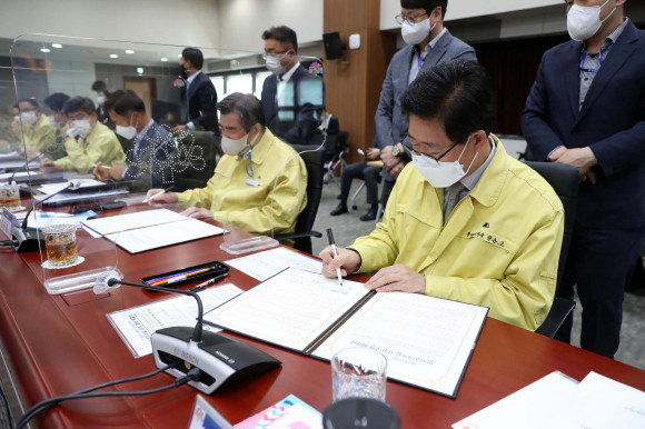 ÀÌ¾î ¡°Äڷγª19¶ó´Â Àü´ë¹Ì¹®ÀÇ Àü¿°º´À¸·Î ¶Ç ´Ù¸¥ ÇÇÇØ°¡ ¹ß»ýÇÒ ¿ì·Á°¡ Å©´Ù´Â Á¡¿¡¼ À̹ø Çù¾àÀº Àü±¹ÃÖÃÊ·Î ½ÃÇàÇÏ´Â ¸¸Å ¸Å¿ì Àǹ̰¡ ³²´Ù¸£´Ù¡±¸ç ¡°À糴ܰ躰 ¼÷¹Ú½Ã¼³ °¡¿ë»óȲ µî ½Ã±ºÀÇ ÇöÀå »óȲÀ» °í·Á, ¹Î°£ ¼÷¹Ú½Ã¼³°úÀÇ Çù·Âü°è¸¦ ´õ¿í °ø°íÈ÷ ±¸ÃàÇϰڴ١±°í ¸»Çß´Ù.