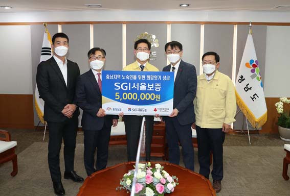 Ãæ³²µµ´Â ¾ç½ÂÁ¶ µµÁö»ç°¡ 5¿ù 10ÀÏ Á¢°ß½Ç¿¡¼ ÀÌ½Â¿Ï SGI¼¿ïº¸Áõ ¼»êÁöÁ¡ÀåÀÇ ¿¹¹æÀ» ¹Þ°í, ÀÌ¿ôµ½±â ¼º±ÝÀ» Àü´Þ¹Þ¾Ò´Ù°í ¹àÇû´Ù.