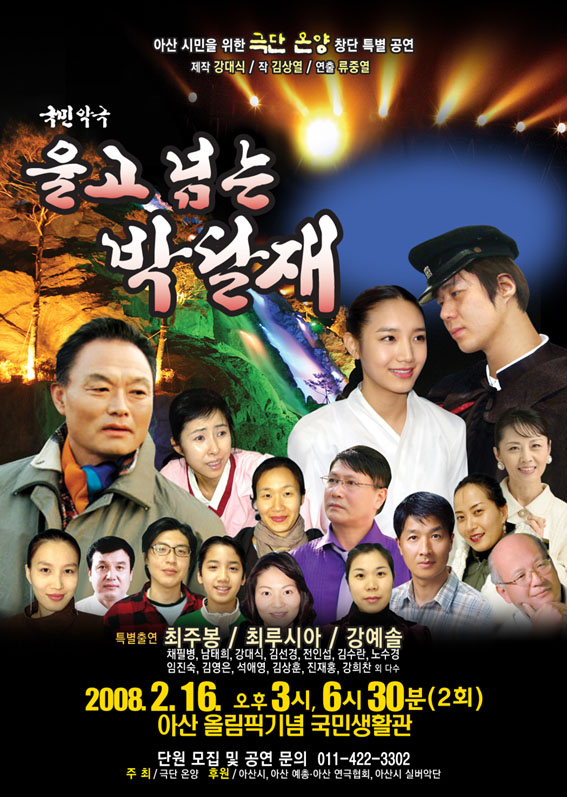 ±Ø´Ü ¡®¿Â¾ç¡¯ÀÌ ¿À´Â 2¿ù 16ÀÏ ¿ÀÈÄ 3½Ã¿Í 6½Ã30ºÐ 2ȸ¿¡ °ÉÃÄ ¾Æ»ê½Ã¿Í ¾Æ»ê¿¹ÃÑ¡¤¾Æ»ê¿¬±ØÇùȸ¡¤¾Æ»ê½Ã ½Ç¹ö¾Ç´Ü °øµ¿ÁÖÃÖ·Î ¿Ã¸²Çȱâ³ä±¹¹Î»ýȰ°ü¿¡¼ ´ëÁß¾Ç±Ø ¡®¿ï°í ³Ñ´Â ¹Ú´ÞÀ硯¸¦ â´Ü°ø¿¬ÇÑ´Ù. ´ëÁß¾Ç±Ø ¡®¿ï°í ³Ñ´Â ¹Ú´ÞÀ硯´Â Áö±ÝÀ¸·ÎºÎÅÍ 70¿© ³â Àü ÃæÁÖ Á¦Ãµ °£ ¹Ú´Þ°í°³¸¦ ³Ñ´Â ³ªÀÌ ¾î¸° ÇÑ ¼Ò³à ±ÝºÀÀÇ À̾߱â·Î ½Ò µÎ ¼¶¿¡ ÆÈ·Á Á¾»ìÀ̸¦ °¡¼ ÁÖÀÎ´ì µµ·Ã´Ô°ú »ç¶û¿¡ ºüÁ® ¾ÆµéÀ» ³º´Â´Ù. ±×ÈÄ µµ·Ã´ÔÀº Çо÷À» À§ÇØ ¶°³ª°í ±ÝºÀÀº Çд븦 ¹Þ´Ù°¡ ³¡³» ÇǺÙÀ̸¶Àú »©¾Ñ±â°í´Â ±×°÷À» ¶°³ª È·ù°è ¿©ÀÚ°¡ µÇ°í¸¸´Ù. ±ÝºÀÀÇ ¾Æ±â´Â °æ¼º Àå¾ÈÀÇ °©ºÎ ÀåȸÀå ºÎºÎÀÇ ¾çÀÚ·Î ÀÔ¾çµÇ¾î ÈǸ¢ÇÏ°Ô ¼ºÀåÇÑ´Ù. ±×ÈÄ ±ÝºÀÀ» ã¾Æ Àü±¹À» ¶°µ¹´ø µµ·Ã´Ô(¹ÚÁØÈ£)Àº ÆóÀÎÀÌ µÇ¾î ±ÝºÀ°ú ´Ù½Ã »óºÀÇÏÁö¸¸, °á±¹ ´ÙÅõ´Ù°¡ ±ÝºÀ¿¡°Ô »ìÇØµÇ°í ¹ýÁ¤¿¡ ¼± ±ÝºÀÀ» ½ÉÆÇÇϰíÀÚ ³ª¿Â °Ë»ç´Â ±ÝºÀÀÌ ¿À¸ÅºÒ¸Á ã¾Æ ´Ù´Ï´ø ¾ÆµéÀ̾úÀ¸´Ï¡¦¡¦. ¹ÎÁ·Á¤¼¿¡ ¸Â´Â ÀüÅë±Ø°ú ¹ÂÁöÄÃÀ» Á¶È½ÃÄÑ ¸¸µç ¾Ç±Ø ¡®¿ï°í ³Ñ´Â ¹Ú´ÞÀ硯´Â ¿ì¸®ÀÇ ±Ù¼¼»ç¸¦ ÅëÇØ ÇöÀçÀÇ »îÀ» µÚµ¹¾Æ º¼ ¼ö ÀÖ°Ô ÇÒ »Ó ¾Æ´Ï¶ó ¿ì¸® Çö´ëÀε鿡°Ô °¡Á· °£ÀÇ »ç¶û°ú ÁøÁ¤ÇÑ È¿ÀÇ Àǹ̸¦ µÇ»õ±æ ¼ö ÀÖ´Â ÁÖ¿Á°°Àº ÀÛǰÀÌ´Ù. ÃÖÁÖºÀ, ÃÖ·ç½Ã¾Æ, °¿¹¼Ö µîÀÌ Æ¯º° Ãâ¿¬ÇØ TV¿Í ¿¬±Ø µîÀ» ÅëÇØ¼ Áß¡¤Àå³âÃþÀÇ »ç¶ûÀ» µë»Ò ¹Þ°í ÀÖ´Â Áß°ß¹è¿ìµéÀÇ ³óÀÍÀº ¿¬±â¸¦ ¾Æ»ê¿¡¼ ¸¸³´Ù´Â ¼³·½µµ ÀÖ´Ù. ¹®È ¼Ò¿Ü Áö¿ª¿¡¼ ²ÙÁØÈ÷ °ø¿¬È°µ¿À» ÇØ¿À¸ç ¾Ç±ØÀÇ »ý¸í·ÂÀ» À̾î¿Â ±Ø´Ü ¡®¿Â¾ç¡¯ÀÌ Á¤¼ºÀ» ±â¿ïÀÎ ¡®¿ï°í ³Ñ´Â ¹Ú´ÞÀ硯´Â ÃÖÁÖºÀ µî ¹è¿ìµéÀÇ ±¸¼ºÁö°í ¸À±ò½º·± ¿¬±â¿Í ³ë·¡, ÃÖ°íÀÇ ¾Ç´ÜÀÌ ¿¬ÁÖÇϴ ȯ»óÀÇ À½·ü°ú ´í¼µéÀÇ À²µ¿ÀÌ ¾î¿ì·¯Á® ¼ø°£ ¼ö°£ÀÌ ³õÄ¥ ¼ö ¾ø´Â ¸íÀå¸éÀ» ¼±»çÇÒ °ÍÀÌ´Ù. ¹Ù»Ú´Ù´Â Çΰè·Î ´Ã ´ÙÀ½ ¼øÀ§·Î ¹Ì·ð´ø ºÎ¸ð´Ô°ú °ø¿¬ ³»³» ¼ÕÀ» ²À Àâ°í ³ë·§°¡¶ô¿¡ Àå´Üµµ ÇÔ²² ¸ÂÃß¸é¼ ¾ðÁ¦³ª º¯ÇÔ¾ø´Â ±× Å« »ç¶û¿¡ Á¶±ÝÀ̳ª¸¶ º¸´äÇØ º¸´Â °¡½¿ µû¶æÇÑ ³¯ÀÌ µÉ °ÍÀÌ´Ù. ÇÑÆí ±Ø´Ü °ü°èÀÚ´Â ¡®¿ï°í ³Ñ´Â ¹Ú´ÞÀç'ÀÇ Æ¯¼ºÀ¸·Î ´ëÁ߾DZØÀº ¸ñÇ¥ºÎÅͰ¡ ´Ù¸£´Ù°í °Á¶ÇÑ´Ù. ±âÁ¸ÀÇ ¾Ç±ØÀº Çٽɰø·«ÃþÀ¸·Î 50´ë ÀÌ»óÀÇ Àå³âÃþÀ» ÁÖ °ü°´À¸·Î °Ü³ÉÇÏÁö¸¸ À̹ø ´ëÁ߾DZØÀº ¾Æµé µþ, ¸ç´À¸®¿Í ½ÃºÎ¸ð´ÔµéÀÌ ÇÔ²² º¸¾Æµµ Áñ°Å¿ò°ú °¨µ¿À» ´À³¥ ¼ö ÀÖ´Ù´Â °Í. ÀÌ´Â ´©±¸³ª Áñ±æ ¼ö ÀÖ´Â ¿ä¼ÒµéÀ» °÷°÷¿¡ ¹èÄ¡½ÃÄÑ ³õ¾Ò±â ¶§¹®À̶ó°í ÇÑ´Ù. ¶Ç ³ë·¡°¡ ´Ù¸£´Ù°í ÇÑ´Ù. ±âÁ¸ÀÇ Èê·¯°£ ¿¾ ³ë·¡ À§ÁÖÀÇ ÃµÆíÀÏ·üÀû ±¸¼ºÀ» Å»ÇÇÇØ Çö½Ã´ëÀÇ °¨°¢¿¡ ¸Â°Ô ·¹ÆÛÅ丮ÀÇ º¯È¸¦ ¸ð»öÇß´Ù´Â °Í. ¶ÇÇÑ ±ØÀÇ ÁøÇà ¼Óµµ°¡ ´Ù¸£´Ù¸é¼ ½ºÇǵðÇÑ ÁøÇàÀ¸·Î °ü°´µé¿¡°Ô ¿ôÀ½°ú °¨µ¿À» ±³Â÷½Ã۸ç Àü´ÞÇϰí Áö·çÇÑ ºÎºÐÀ» °ú°¨È÷ ÁÙÀÎ ¾ÆÁÖ ºü¸¥ Àü°³°¡ µ¸º¸ÀÎ´Ù°í °Á¶Çß´Ù. ÇÑÆí ±Ø´Ü ¡®¿Â¾ç¡¯Àº â´Ü ¹è°æÀ¸·Î Àα¸ 23¸¸ÀÇ ¾Æ»ê½Ã°¡ Àü±¹¿¡¼ ÁÖ¸ñÇÏ´Â °¡Àå ¾Æ¸§´Ù¿î ¿¹¼úÀÇ µµ½Ã·Î ¹ßÀü ÇÒ ¼ö ÀÖµµ·Ï ¸ðµç ¿¹¼úÀεé°ú Çù·ÂÇÏ¿© ¿¬±ØÀÇ ¸£³×»ó½º¸¦ ½ÇÇöÇϴµ¥ ÀÖ´Ù°í ¹àÇû´Ù. ¶Ç Ãæ³²Áö¿ª ¿¬±ØÀÇ ÁúÀû, ¾çÀû ¹ßÀüÀ» µµ¸ðÇÏ¿© Áö¿ªÁֹε鿡°Ô ¼öÁØ ³ôÀº °ø¿¬À» µµ¸ðÇØ Áö¿ªÁֹε鿡°Ô ¼öÁØ ³ôÀº °ø¿¬À» °ü¶÷ ÇÒ ¼ö ÀÖµµ·Ï Çϸç, ¹Ì·¡ÀÇ ²Þ³ª¹«µéÀΠû¼Ò³âµéÀÇ ¿¬±ØÈ°µ¿À» Àû±Ø Áö¿øÇϰí, ¿©Å¸ÀÇ ¿¹¼ú À帣¿Í ¿¬°èÇÏ¿© ¿¬±ØÀÇ À§»óÀ» µå³ôÀ̰ڴٴ °Í. ±Ø´Ü Ȱµ¿°èȹÀº ¿ì¼± ¿¬°£»ç¾÷À¸·Î ¡ã¾Æ»ê½Ã Çлý¿¬±ØÁ¦ ¹× û¼Ò³â ¿¬±Ø ¡ã¿ì¼ö ¿¬±ØÀÛǰÀÇ ·¹ÆÄÅä¸®È ¡ã¾Æ»êÁö¿ª °íÀ¯ÀÇ ¿¬±Ø °³¹ß ¡ã¾Æ»ê ¿¹ÃÑÁöºÎ ¿¬°è»ç¾÷ Áö¿ø ¡ã¿¬±Ø ¼¼¹Ì³ª ¹× ¿öÅ©¼ó °³ÃÖ ¡ãŸ ¿¹¼ú¹®È ´Üü ¹× ±Ø´Ü °£ÀÇ ±³·ù ¡ãÈÄ¿øÀÚ ¹ß±¼ ¹× °ü¸®(¿¹ : Àå¾ÖÀÎ, »çȸº¹Áö ½Ã¼³ À§¹®°ø¿¬) ¡ãȸ¿ø ¸ðÁý ¹× °ü¸® (»ó½Ã ¸ðÁý) ¡ãÁö¿ª´ëÇÐ ¹× ¿¡¼ú´Üü¿Í ¿¬°èÇÏ¿© ¿ì¼öÇÑ ¿¬±Ø ÀÎÀç »ó½Ã ¹ß±¼ ¹× ¿¬±Ø ÀÎÇÁ¶ó ±¸Ãà ÃàÁ¦ ¹× ÇÁ·Î±×·¥ °³¹ß ¡ãÁ¤±â ÃÑȸ ¹× ÀÌ»çȸ µîÀÌ´Ù, Àå±â½Ã¾÷À¸·Î´Â ¡ã¿ì¼ö âÀÛÈñ°î ¹ß±¼À» À§ÇÑ Èñ°î°ø¸ð ¡ãÀü±¹ ¿¬±ØÁ¦ Âü°¡ ¡ã¾Æ»ê ¿¹¼úÀÎ ÃàÁ¦ Âü°¡(¿¬±Ø°ø¿¬) (¿¹ : ¡®¼º¿õ À̼ø½Å¡¯ ÀÛǰ Áغñ Áß) ¡ã¿¬±Ø¿¡ °üÇÑ ´Ù¾çÇÑ ÇмúÀû ¿¬±¸ ¡ãÃæ³² ¿¬±Ø»ç ÀÚ·á ¹ß±¼ ¹× º¸Á¸ °ü¸® ¡ãÀú¼Òµæ ¼Ò¿Ü°èÃþÀ»