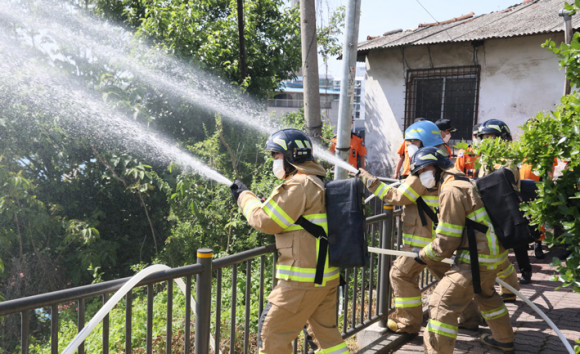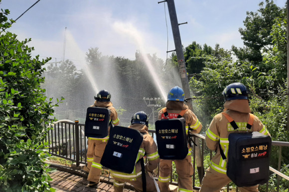 12ÀÏ¿¡´Â ÁÖÅÃÀÌ ¹ÐÁýÇØ ÀÖÁö¸¸ ¼Ò¹æÂ÷ ÁøÀÔÀÌ ºÒ°¡ÇÑ Ãµ¾È½Ã µ¿³²±¸ û¼öµ¿ÀÇ ÇÑ Áö¿ª¿¡¼ 2°³Á¶°¡ µ¿½Ã¿¡ ¼Ò¹æÈ£½º 200m¸¦ ¿¬ÀåÇØ ÈÀ縦 Áø¾ÐÇÏ´Â ½ÇÇèÀ» Çß´Ù. ½ÇÇè°á°ú °üâ(³ëÁñ)¿¡¼ À¯È¿ÇÑ ¹æ¼ö µµ´Þ°Å¸®°¡ 15m ÀÌ»óÀÌ ³ª¿Ã Á¤µµÀÇ ¾Ð·ÂÀ¸·Î Áߴܾø´Â ÈÀçÁø¾ÐÀÌ °¡´ÉÇÏ´Ù´Â °ÍÀ» È®ÀÎÇß´Ù.