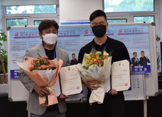 ¹Ú¹Î½Ä À§¿øÀå ´ç¼±ÀÚ´Â ¡°¾î·Æ°Ô ÀÔÈĺ¸ÀÚ µî·ÏÀ» °áÁ¤ÇÏ°í ´ç¼±µÈ ¸¸Å Á¶ÇÕ¿øµéÀÇ ¸ñ¼Ò¸®¿¡ ´õ ±Í¸¦ ±â¿ï¿© Á¶ÇÕ¿øÀÇ ±ÇÀÍÀ» ´ëº¯ÇÒ ¼ö ÀÖ´Â ¾Æ»ê½Ã°ø¹«¿ø³ëµ¿Á¶ÇÕÀÌ µÇµµ·Ï ÃÖ¼±À» ´ÙÇϰڴ١±¶ó¸ç ¡°´ç´çÇÑ ³ëÁ¶, °Ç°ÇÑ Á¶Á÷¹®È Çü¼ºÀ» À§ÇØ ÇÔ²² ÇØÁÖ½Ã±æ ºÎŹµå¸°´Ù. ´Ù½Ã Çѹø Á¶ÇÕ¿ø´ÔµéÀÇ ÁöÁö¿¡ °¨»çµå¸°´Ù¡±¶ó°í ¼Ò°¨À» ¹àÇû´Ù.