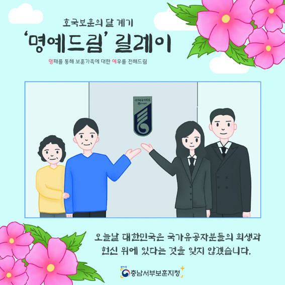 ±¹°¡À¯°øÀÚ ¸íÆÐ ´Þ¾Æµå¸®±â¸¦ ÅëÇØ º¸Èư¡Á·¿¡ ´ëÇÑ ¿¹¿ì¸¦ ÀüÇØ µå¸°´Ù´Â ÀǹÌÀÎ ¡®¸í¿¹µå¸² ¸±·¹ÀÌ¡¯´Â °ü³» ±â°ü¡¤´ÜüÀåÀ» ºñ·ÔÇÑ ±¹¹ÎµéÀÌ ¼Ö¼±ÇÏ¿© Âü¿©ÇÏ´Â ¸±·¹ÀÌ ¹æ½ÄÀ¸·Î ÁøÇàÇϸç, 5¿ù 31ÀÏ Ã¹ ¹øÂ° ÁÖÀÚÀÎ È«¼º±º¼ö¸¦ ½ÃÀÛÀ¸·Î Ãâ¹ßÇÑ´Ù.
