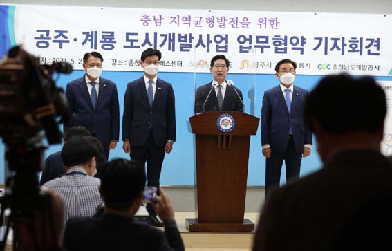 Çù¾à ü°á¿¡ ÀÌ¾î ¾ç Áö»ç µîÀº µµÃ» ÇÁ·¹½º¼¾ÅÍ¿¡¼ ±âÀÚȸ°ßÀ» °®°í, °øÁÖ¡¤°è·æ µµ½Ã°³¹ß»ç¾÷ ÃßÁøÀ» °ø½Ä ¹ßÇ¥Çß´Ù.