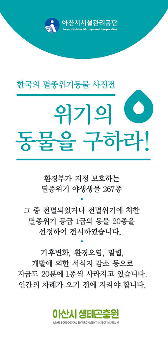 | | ¡è¡è <»çÁøÁ¦°ø=¾Æ»ê½Ã½Ã¼³°ü¸®°ø´Ü> | ¨Ï ¿Â¾ç½Å¹® | | ¾Æ»ê½Ã½Ã¼³°ü¸®°ø´Ü(ÀÌ»çÀå ÀÌÁ¾¹Î, ÀÌÇÏ °ø´Ü) »ýŰïÃæ¿ø¿¡¼´Â µ¿¹°º¸È£¿¡ ´ëÇÑ °æ°¢½É °íÃ븦 À§ÇÑ ¸êÁ¾À§±â µ¿¹° »çÁøÀü ¡®À§±âÀÇ µ¿¹°À» ±¸Ç϶ó!¡¯¸¦ 5¿ù 28ÀϺÎÅÍ °³ÃÖÇÑ´Ù°í ¹àÇû´Ù.