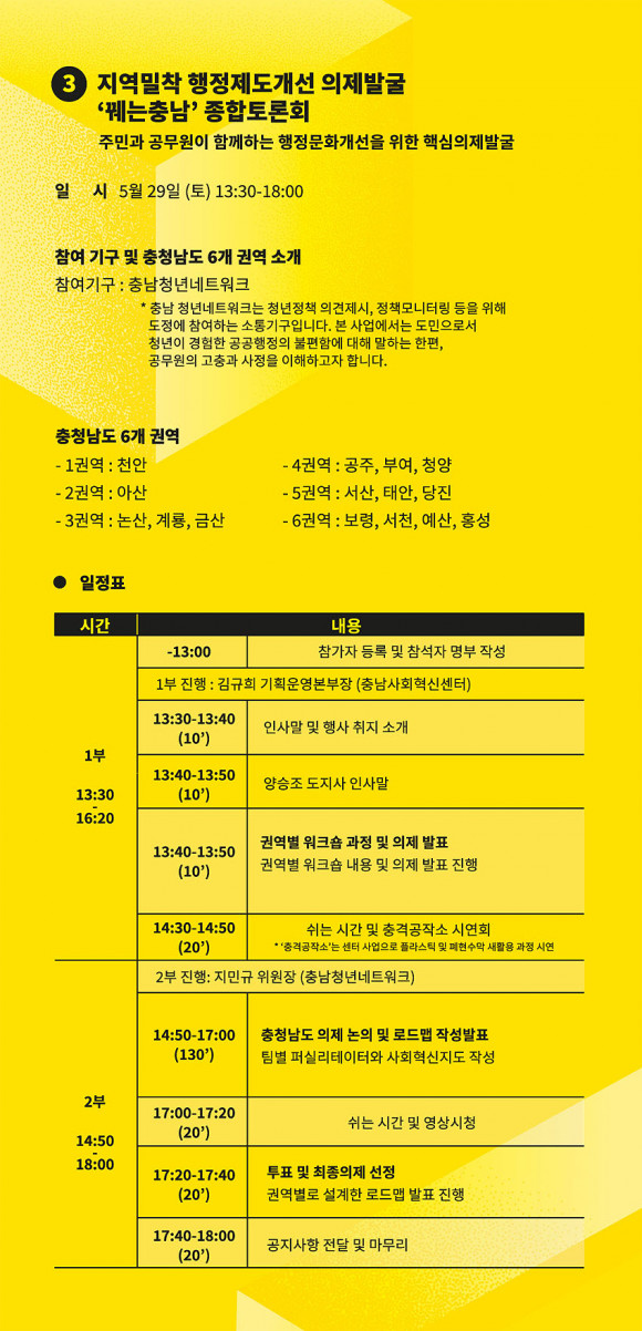¶ÇÇÑ, ¡®²ç´ÂÃæ³²¡¯¿¡¼´Â Ãæ³²Ã»³â³×Æ®¿öÅ© û³âµé°ú Ãæ³² µµ-½Ã¡¤±º °ø¹«¿øµéÀÌ ¼ÒÅë°ú Çù·ÂÀ» ÅëÇØ ÇàÁ¤¹®È¸¦ °³¼±Çϱâ À§ÇÑ ¡®ÇÙ½ÉÀÇÁ¦ ¹ß±¼ ½ÇÇ衯À» ÃßÁøÇØ¿ÔÀ¸¸ç ¼±Á¤µÈ ÀÇÁ¦´Â ´ã´çºÎ¼ÀÇ °ËÅ並 ÅëÇØ Á¤Ã¥¿¡ ¹Ý¿µÇϰųª °³¼±À» ÇØ ³ª°¥ °èȹÀÌ´Ù.