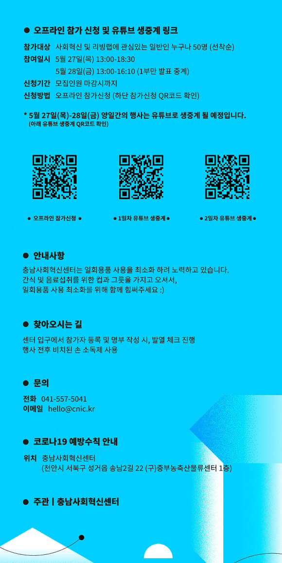 Ãæ³²»çȸÇõ½Å¼¾ÅÍ(¼¾ÅÍÀå ¹ÚÁÖ·Î)´Â 5¿ù 27ÀϺÎÅÍ 29ÀϱîÁö 3Àϰ£ ¿Â¡¤¿ÀÇÁ¶óÀÎ »çȸÇõ½ÅÆ÷·³ ¡®¸®ºù·¦ ÇØº¼·¦¡¯À» °³ÃÖÇß´Ù°í 5¿ù 31ÀÏ ¹àÇû´Ù.