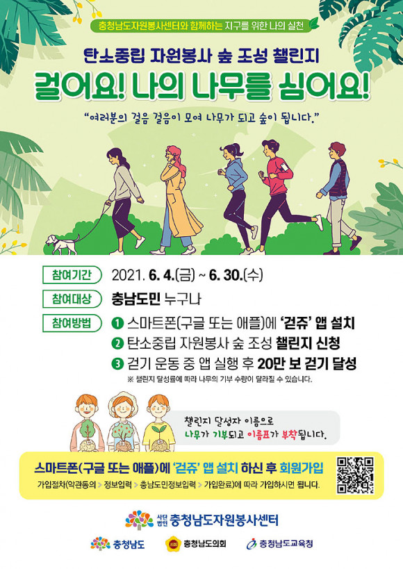 縰Áö ±â°£ ³» 20¸¸º¸ ÀÌ»óÀÇ °ÉÀ½¼ö¸¦ ´Þ¼ºÇϸé Âü¿©ÀÚ À̸§À¸·Î ³ª¹«°¡ ±âºÎµÇ°í, ÀÌ·¸°Ô ¸ð¾ÆÁø ³ª¹«´Â ź¼ÒÁ߸³ ÀÚ¿øºÀ»ç ½£¿¡ ½É¾îÁú ¿¹Á¤ÀÌ´Ù. ÀÌÈÄ ³ª¹«½É±â ÀÚ¿øºÀ»ç Ȱµ¿¿¡´Â °³ÀÎ ¶Ç´Â °¡Á·ÀÌ Á÷Á¢ Âü¿©ÇÒ ¼öµµ ÀÖ´Ù.