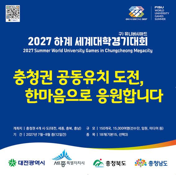 ÃæÃ»±Ç 4°³ ½Ãµµ(´ëÀü¡¤¼¼Á¾¡¤ÃæºÏ¡¤Ãæ³²)´Â Àü¼¼°è ´ëÇлýµéÀÇ ÃàÁ¦ÀÎ 2027 ÇÏ°è ¼¼°è´ëÇаæ±â´ëȸ¸¦ ´ëÇѹα¹À¸·Î À¯Ä¡Çϱâ À§ÇØ °øµ¿À¸·Î µµÀüÇϰí ÀÖ´Ù.