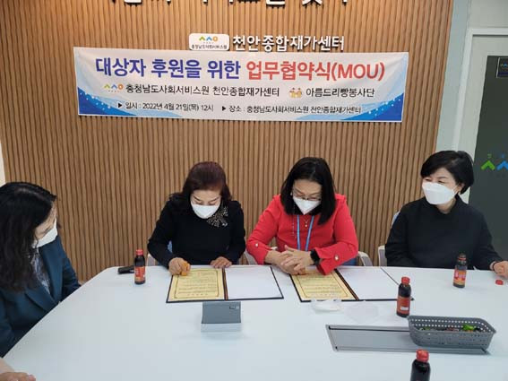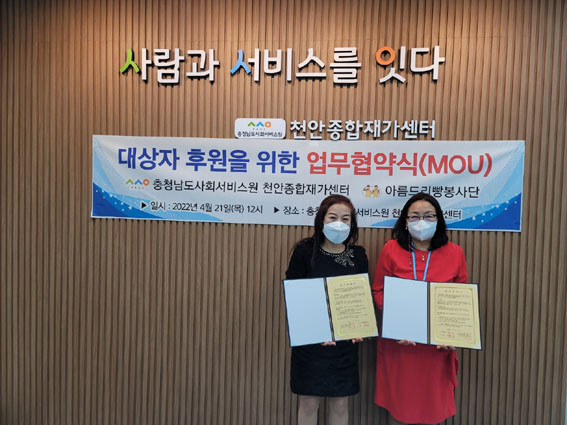 | | ¡è¡è <»çÁøÁ¦°ø=Ãæ³²»çȸ¼ºñ½º¿ø> | ¨Ï ¿Â¾ç½Å¹® | | Ãæ³²»çȸ¼ºñ½º¿ø õ¾ÈÁ¾ÇÕÀç°¡¼¾ÅÍ(¼¾ÅÍÀå ÃÖ¿µÀÚ)´Â 4¿ù 21ÀÏ ¾Æ¸§µå¸® »§ ºÀ»ç´Ü(´ÜÀå À̱Ϳ¬)°ú õ¾ÈÁ¾ÇÕÀç°¡¼¾ÅÍ¿¡¼ ÈÄ¿ø¾÷¹« Çù¾à½ÄÀ» °¡Á³´Ù.