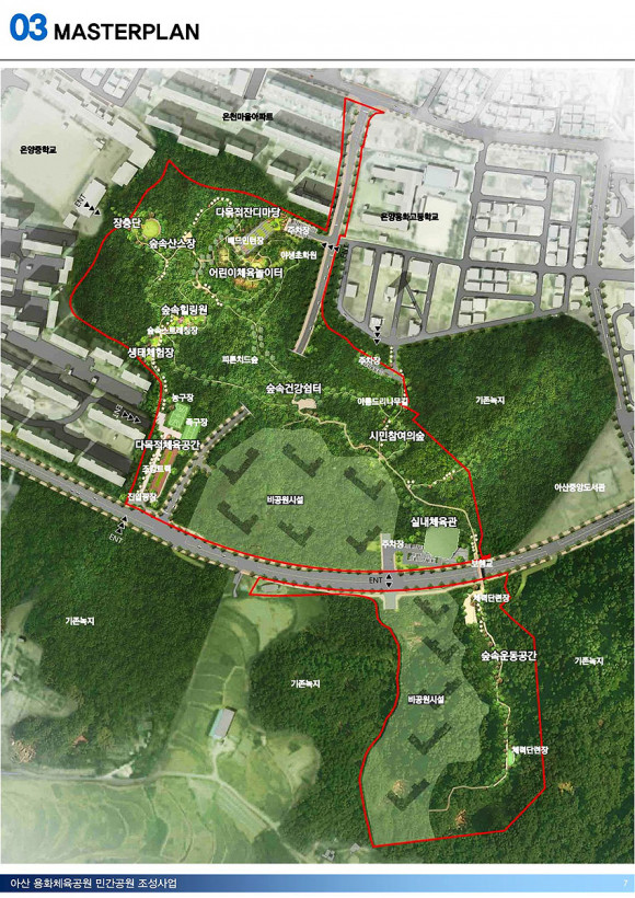 ÁÖ¿ä ½Ã¼³·Î´Â ´Ù¸ñÀû Àܵ𸶴ç, ´Ù¸ñÀû üÀ°°ø°£, ¾î¸°ÀÌüÀ°³îÀÌÅÍ µî üÀ°È°µ¿ Ȱ¼ºÈ¸¦ À§ÇÑ °ø°£°ú ½£¼ÓÈú¸µ¿ø, »ýÅÂüÇèÀå, ÇÇſġµå±æ µî ±âÁ¸ ÁöÇüÀ» Ȱ¿ëÇÑ ´Ù´Ü½Ä Á¤¿ø, ½£¼Ó»ê½ºÀå, ½£¼Ó°Ç°Ã¼Å©½°ÅÍ, ¼û¼Ó¿îµ¿°ø°£, ÀåÃá´Ü µî ¿©°¡ °ø°£ µîÀÌ µé¾î¼³ ¿¹Á¤ÀÌ´Ù.