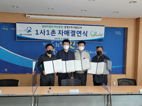 À̳¯ 1»ç 1ÃÌ ÀڸŰῬ½ÄÀ» ü°áÇÑ Çö´ëÂ÷ ¾Æ»ê°øÀåÀº °á¿¬ ´ë»ó ¸¶À»¿¡ ¸¶À» ¹ßÀü±â±ÝÀ» Àü´ÞÇϰí ÇâÈÄ ³óÃÌÀϼյ½±â, ³ó»ê¹° Á÷°Å·¡ÀåÅÍ °³¼³, µ¶°Å³ëÀÎ ÈÄ¿ø»ç¾÷ µî ´Ù¾çÇÑ Áö¿øÈ°µ¿À» Àü°³Çϱâ·Î Çß´Ù.